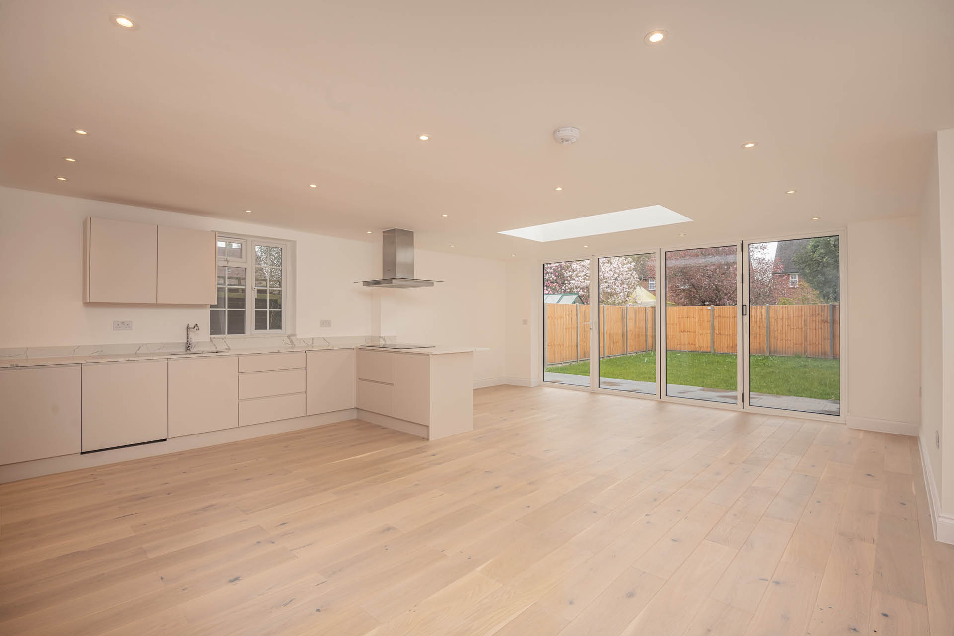Hillcrest had been uninhabited for at least 2 years and was dark, tired and very run down. A single-story rear extension with a roof light and bi-folding doors that run across the full length of the back of the house was added which now formed the new kitchen/lounge/diner.