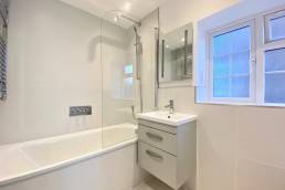 The three bedrooms upstairs were completely renovated and fitted wardrobes were added. A gorgeous new family bathroom was designed. Walking through the doors of this newly renovated house with light oak floors you could see right into the lovely garden. The use of glass and pale colours gave impression of warmth, luxury and light.