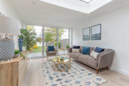 A single story rear extension was added to the back of the house opening up fully to the large garden at the back with bi-folding doors. A roof light was also installed over the extension making it a bright large kitchen/diner/lounge. A new WC was created on the ground floor. The front porch was rebuilt and insulated making the entrance to the house warm and inviting. Upstairs was completely redesigned, two double bedrooms were created and served by a Jack & Jill bathroom